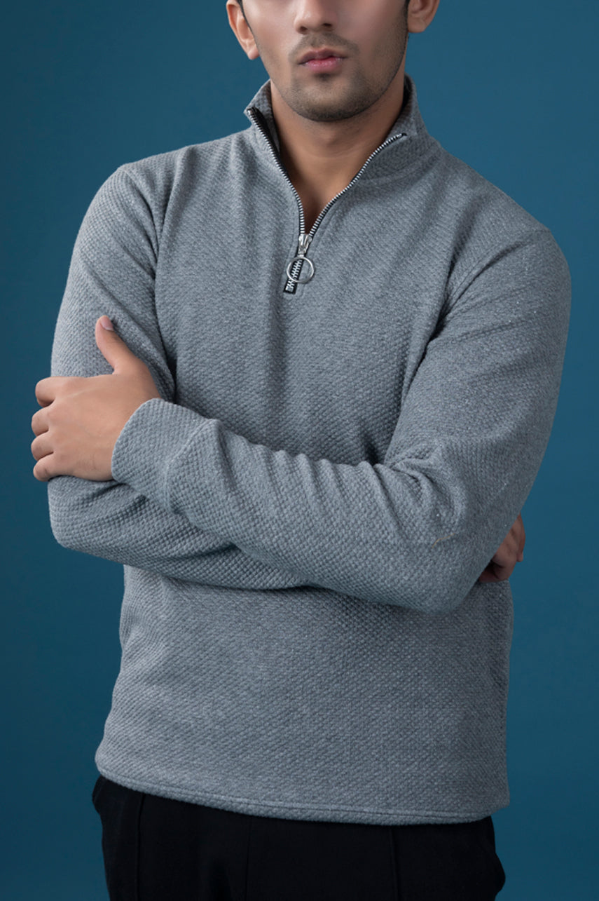 Design: Solid mock neck with a half zipper, subtle texture, and clean minimal finish