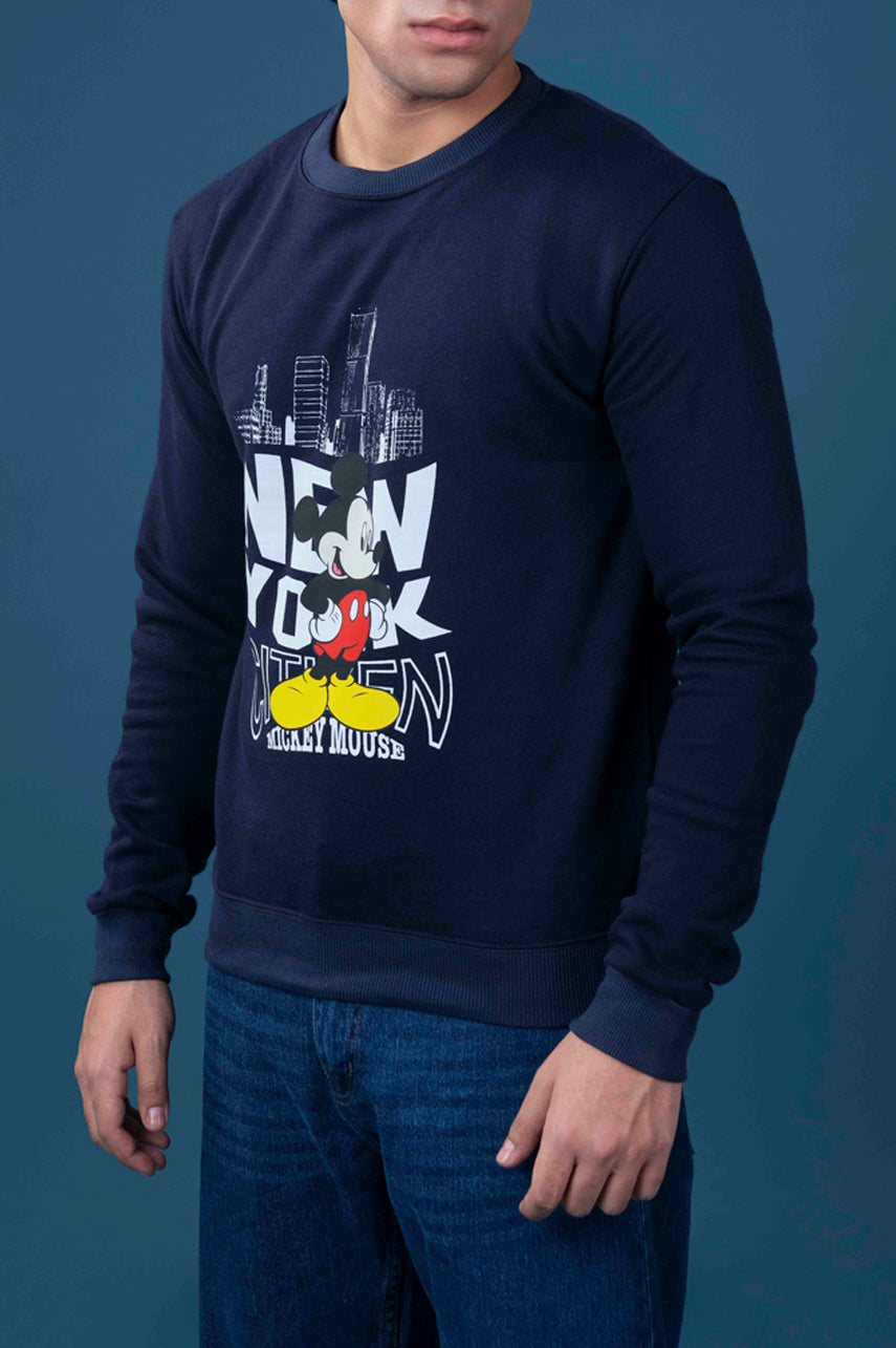 Design: Solid sweatshirt with subtle "MICKEY MOUSE" chest Print, ribbed neckline, cuffs, and hem